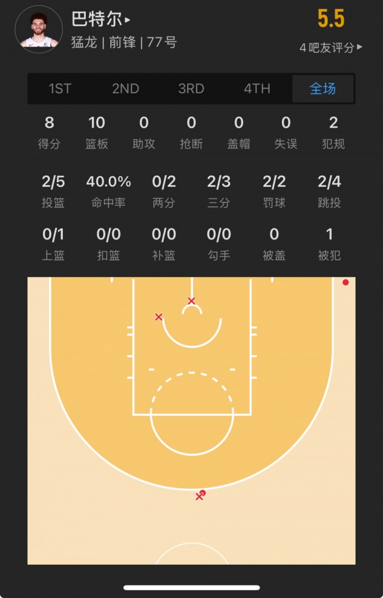 猛龙落选秀 贾米森-巴特尔 登场24.5分钟