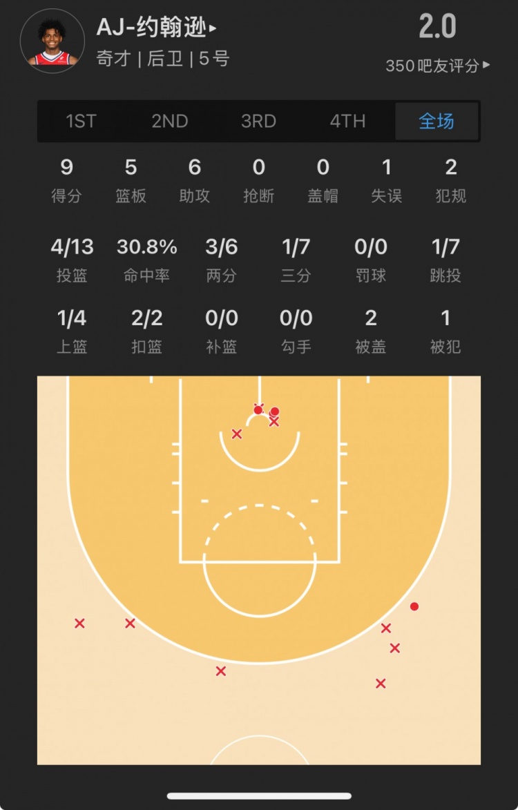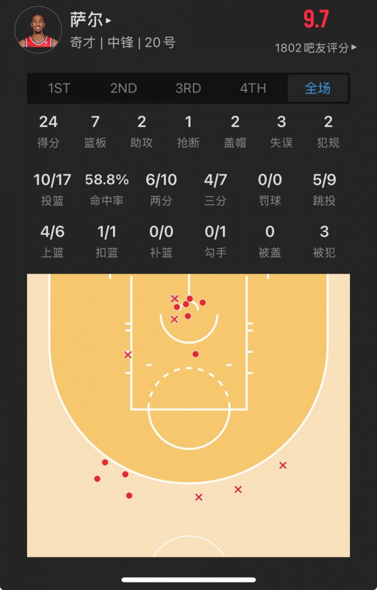 菜鸟丨榜眼萨尔17中10揽下24分7板76人落选版华子19分10板5断!