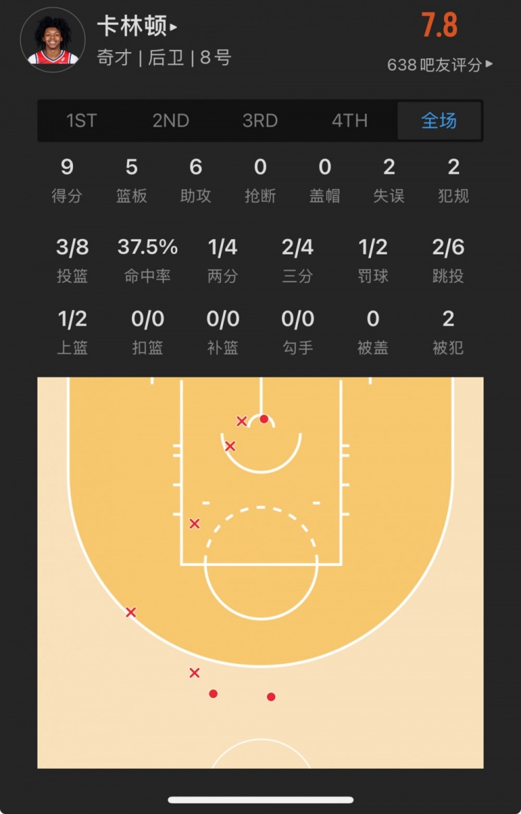 奇才14号秀 卡尔顿-卡林顿 登场28.2分钟