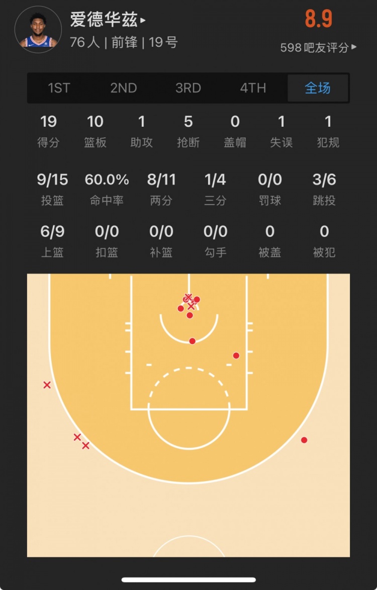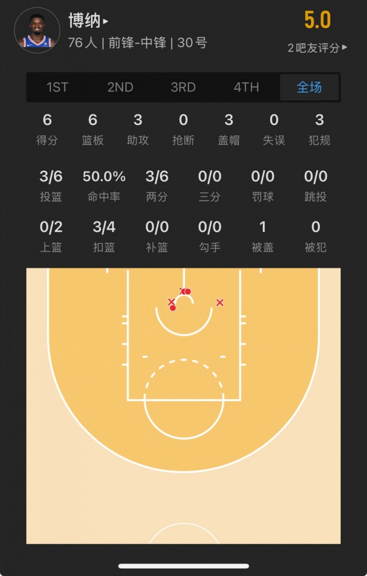 76人41号秀 阿德姆-博纳 登场22.6分钟