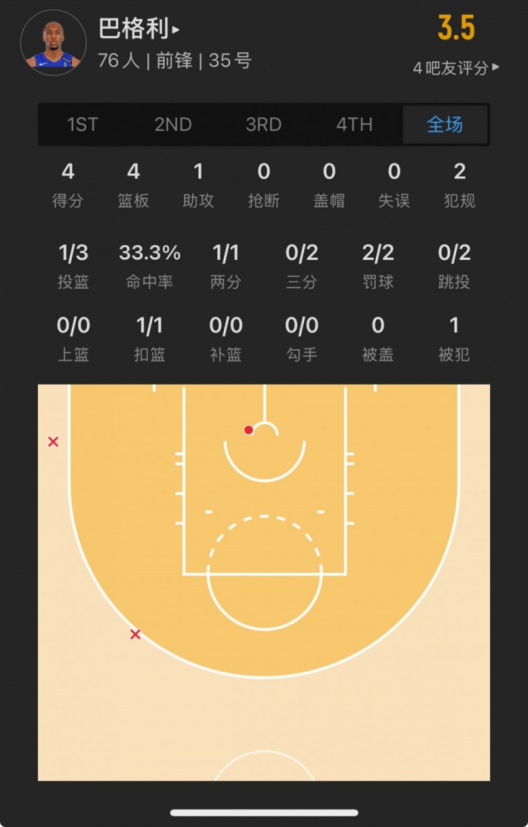 76人落选秀 马库斯-巴格利 登场18.6分钟