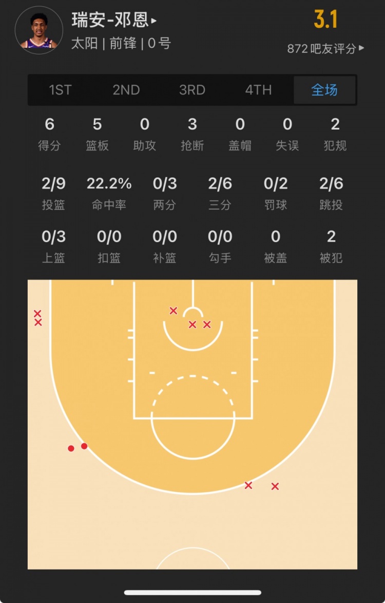 太阳28号秀 瑞安-邓恩 登场21.7分钟