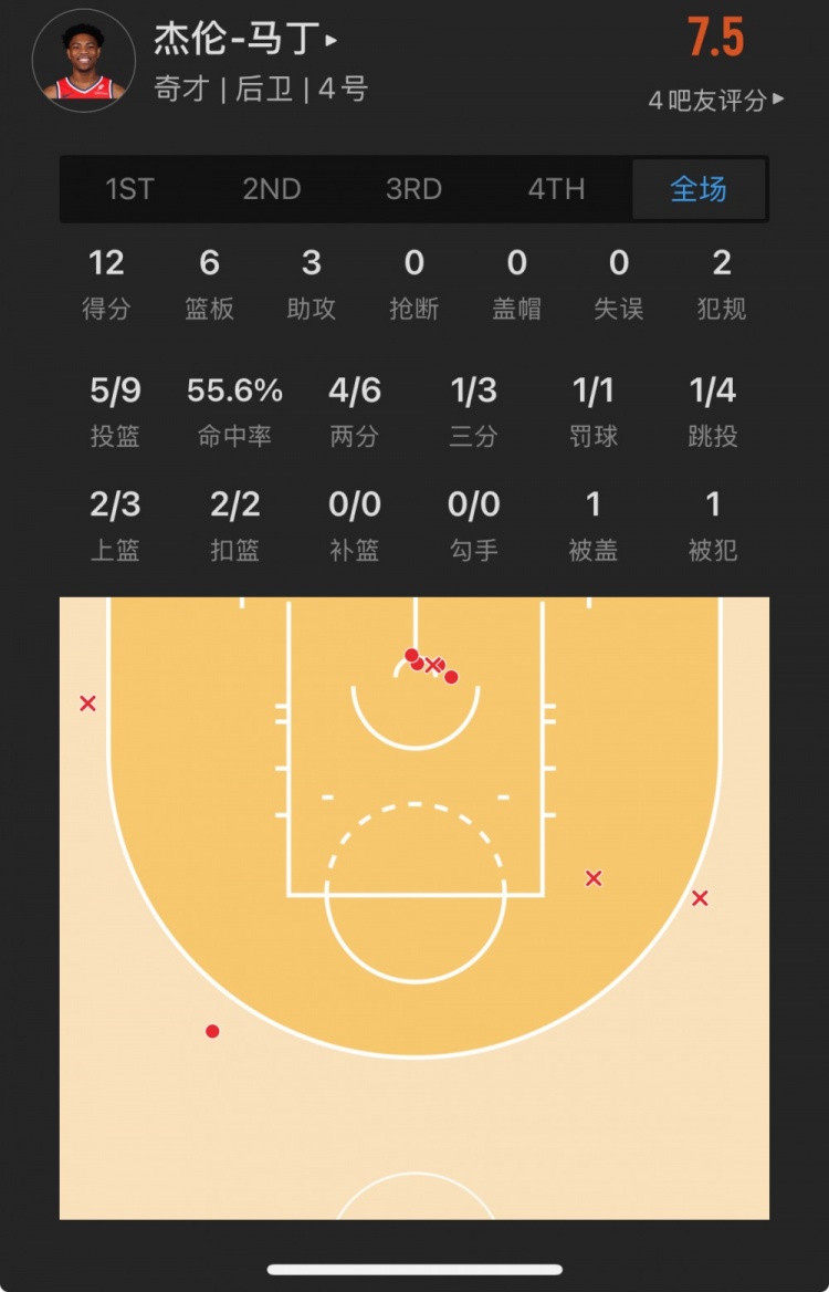 奇才落选秀 杰伦-马丁 登场32.0分钟