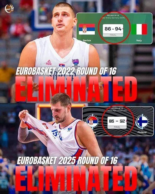 对于塞尔维亚这支传统篮坛劲旅而言,这样的结果无疑是沉重的,毕竟回溯其大赛征程,无论是奥运会(2016 年银牌)、世界杯(2014年、2023年银牌)还是欧锦赛(2009 年、2017 年银牌),他们始终与最高领奖台差之毫厘,如今连八强门槛都难以踏入,更显遗憾。