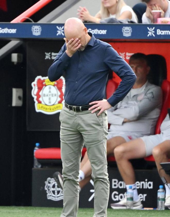 情况很特殊:若仅仅在两轮比赛后就解雇主教练,总是意味着一种自我指责。现在,没人愿意为滕哈赫能继续作为勒沃库森主教练迎接第3轮比赛而担保——因此,俱乐部方面没有任何为这位主教练辩护的表示。