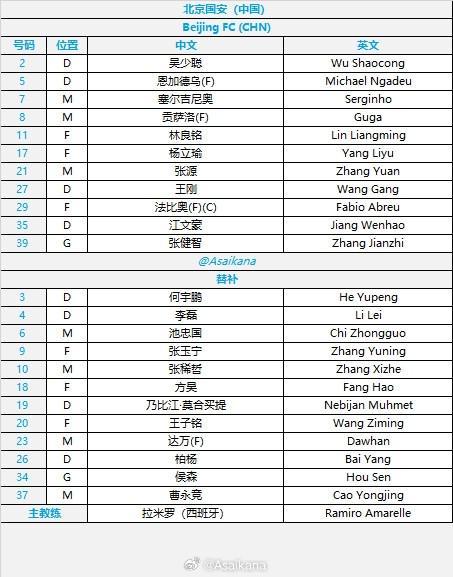 北京国安首发: