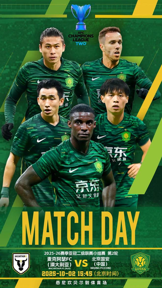 - 2025-26赛季亚冠二级联赛小组赛 第2轮麦克阿瑟(澳大利亚)VS北京国安(中国)2025.10.02 15:45(北京时间)悉尼坎贝尔...发表于: 10-02 08:59