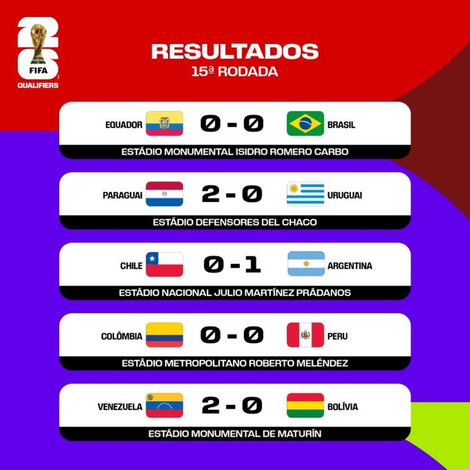 南美积分榜:26名差3分&其中4队丢分,第7委内瑞拉2连胜希望大增