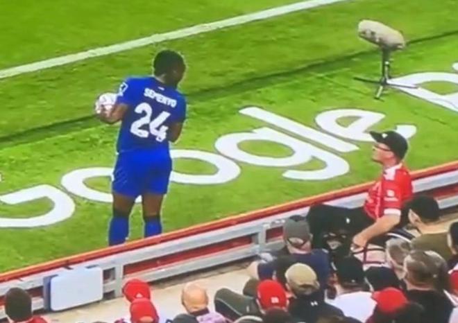 第20分钟时,安菲尔德球迷一起鼓掌,以这种独特的方式再次悼念若塔。然而,接下来的一幕让人无比意外。第30分钟,裁判忽然中断了比赛,原来是他接到了塞梅诺的投诉,后者称他遭到了利物浦球迷的种族歧视。