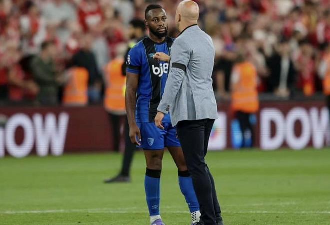 暂停了比赛后,主裁判走到场边与利物浦主帅斯洛特、工作人员交流。随后,裁判宣布比赛继续进行。比赛还没结束,英超官方第一时间发文:“在利物浦对阵伯恩茅斯的比赛中,看台上球迷对塞梅诺有歧视性侮辱。安菲尔德将因此事接受全面调查。”