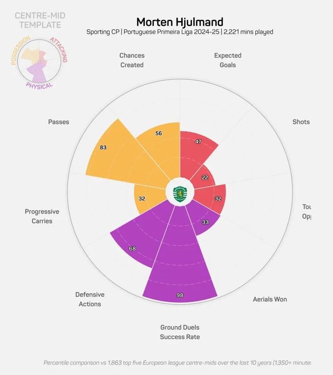 尤尔曼德的最大优势是他的对抗成功率和传球水平,而且他的攻防非常均衡,可以说是为阿莫林343阵型中场球员量身定制的特点,双方合作得很熟悉。而且,他的身价(5000万英镑)或许只有巴莱巴的不到一半。