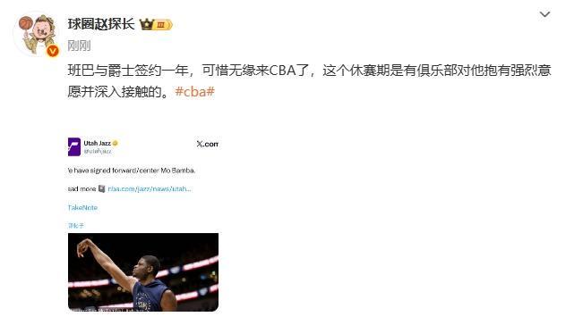 据媒体人@球圈赵探长报道,这个休赛期有CBA俱乐部对班巴有强烈意愿并进行了深入接触。原文如下: