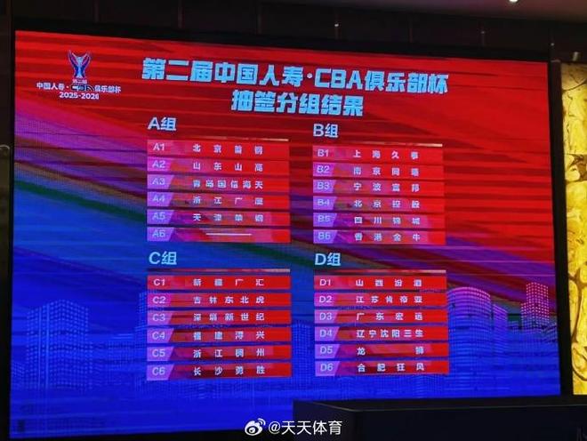 CBA俱乐部杯抽签:A组重演总决赛对决,D组再现辽粤大战