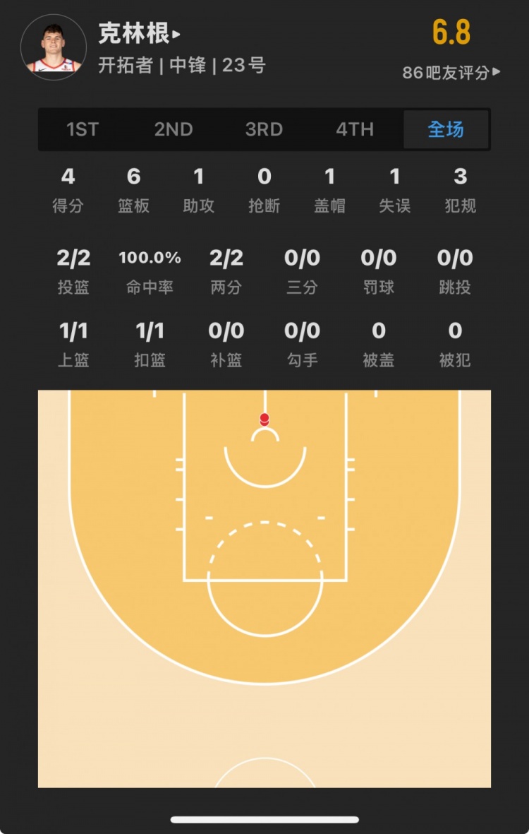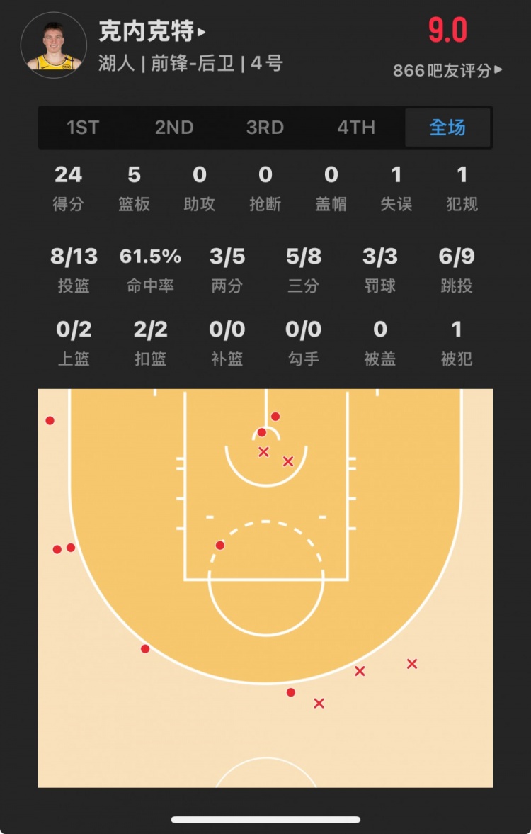 【菜鸟】克内克特13中8砍24+5布朗尼进轮换15分钟5投0中3失误