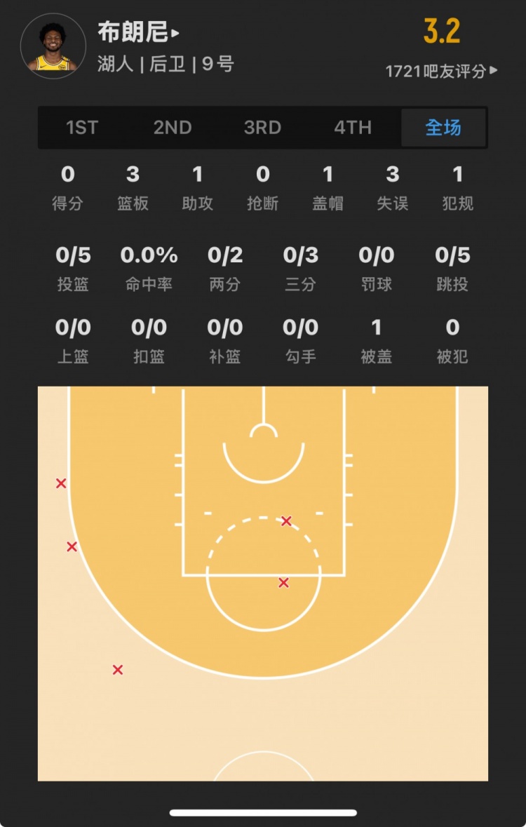 湖人55号秀 布朗尼-詹姆斯 登场15.4分钟