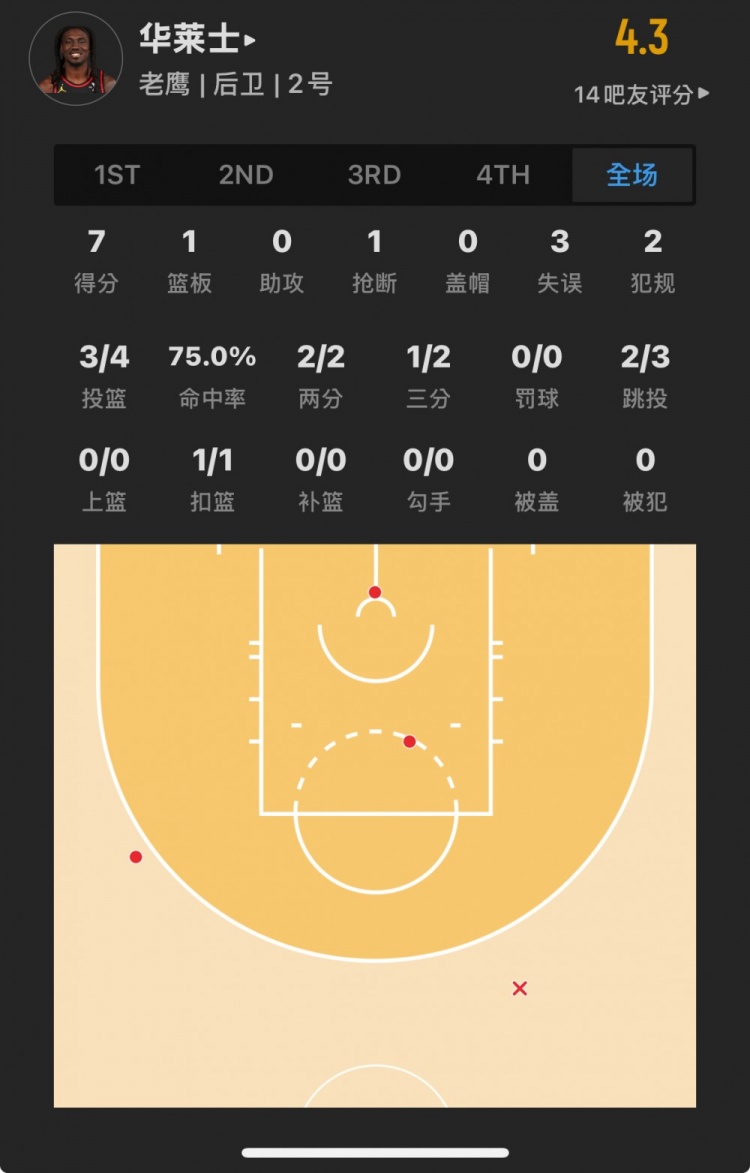 老鹰落选秀 基顿-华莱士 登场21.9分钟