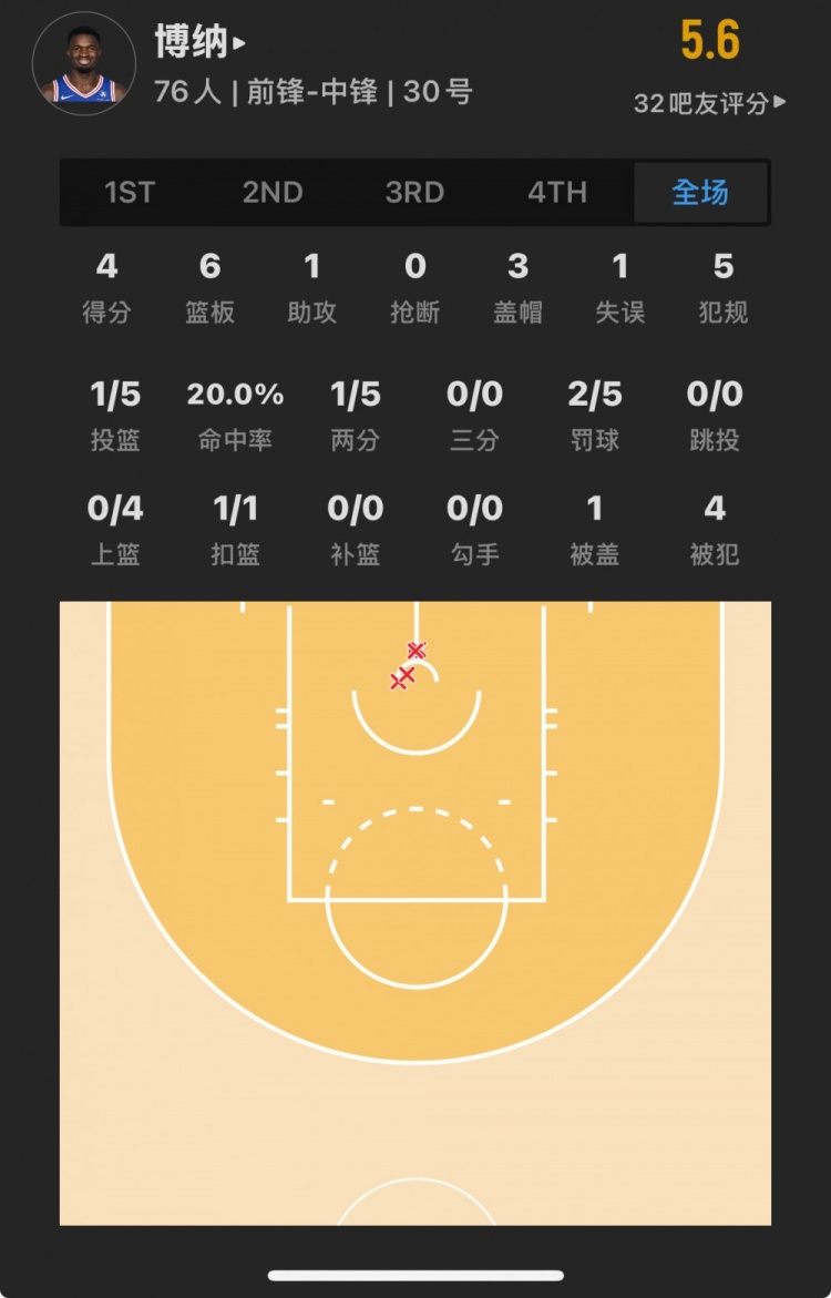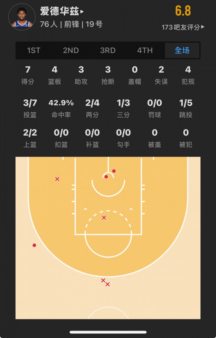 76人41号秀 阿德姆-博纳 登场19.8分钟