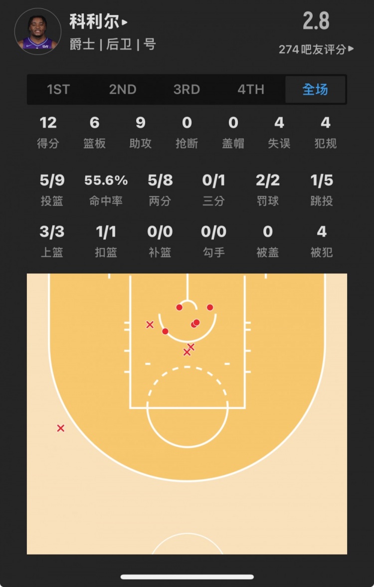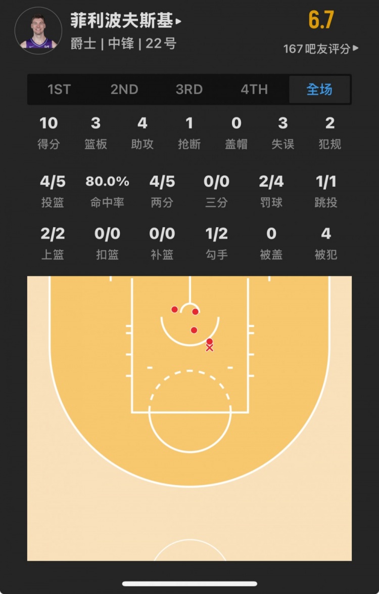 爵士32号秀 凯尔-菲利波夫斯基 登场19.8分钟