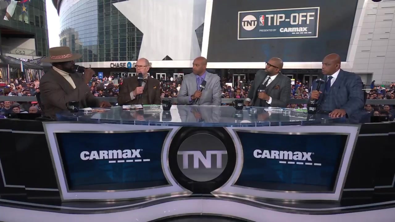 02月16日讯 NBA全明星扣篮大赛稍后上演,名宿卡特加入TNT直播间与奥尼尔等人互动。