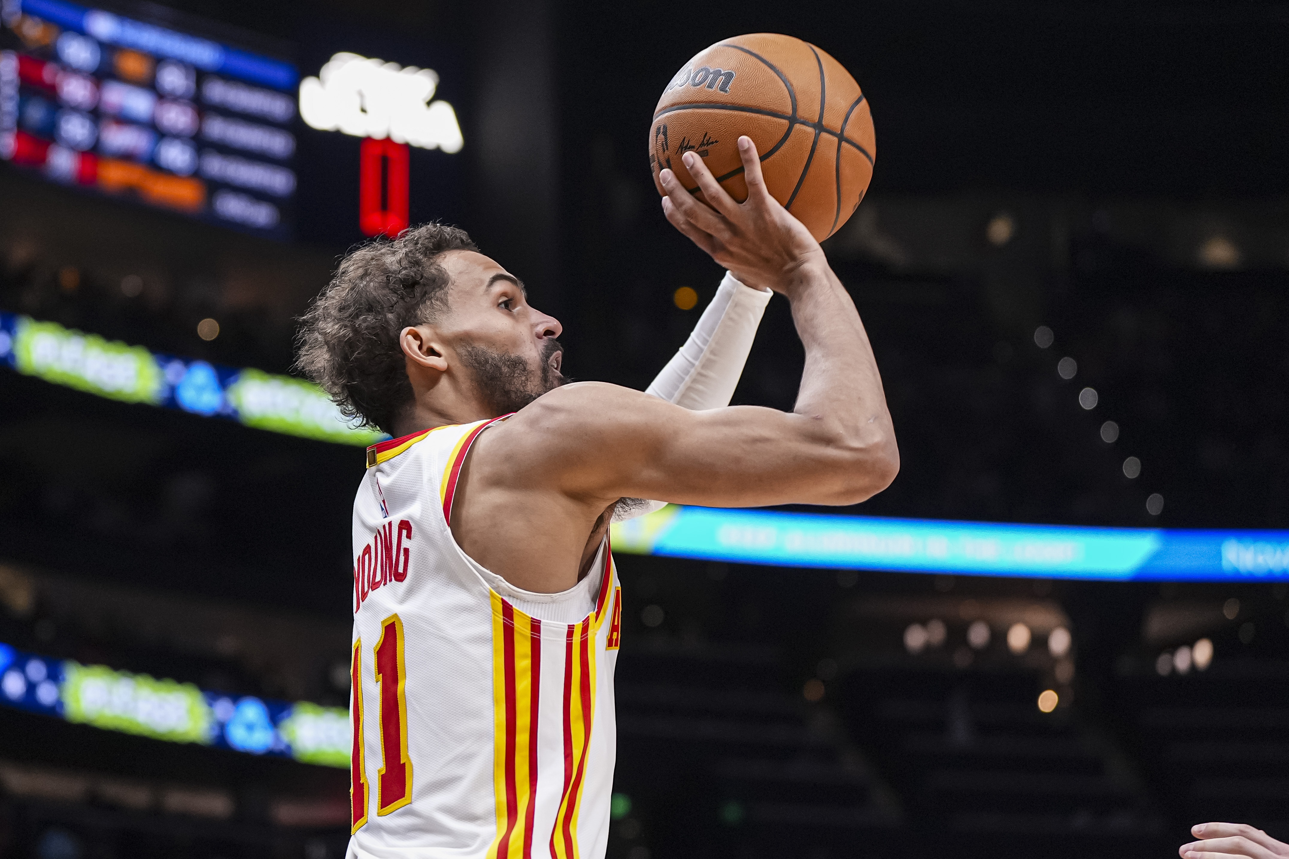 此役,特雷-杨出战35分42秒,投篮12中4,三分6中1,罚球8中8,得到17分2篮板8助攻,还有4失误。