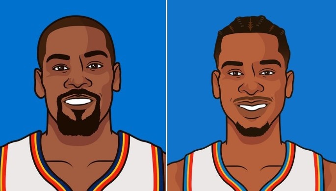 赛后,数据媒体StatMuse列出了亚历山大和杜兰特首次总决赛交出的数据: