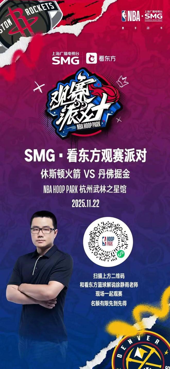 SMG·看东方观赛派对 NBA杯掘金VS火箭震撼来袭一场巅峰对决即将引爆全场我们邀你亲临观赛派对现场见证两支球队的精彩对决