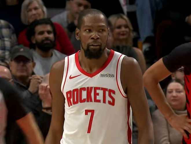 火箭连败开拓者,杜兰特总得分超越张伯伦,小贾三分球砸歪篮筐