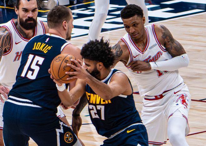 本赛季NBA常规赛赛程快过半,有很多让人看不懂的球队。比如雷霆一路高歌猛进,但就是打不过马刺。而且随着吹罚红利被抽走,雷霆在打出联盟第一净效率值的同时,短板暴露愈发明显:吹罚尺度一致时,高度和对抗严重不足。还有东部的老牌豪门凯尔特人,球队老大塔图姆受伤,霍勒迪、波神等人被送走,杰伦布朗和怀特带着残阵一路爬升到东部前三,就等着塔图姆归位继续当东部霸主了。但还有一支球队,最近两周的表现,有了翻天覆地的变化,就是掘金,他们生动演绎了一句话:地球离了谁都转。