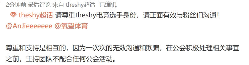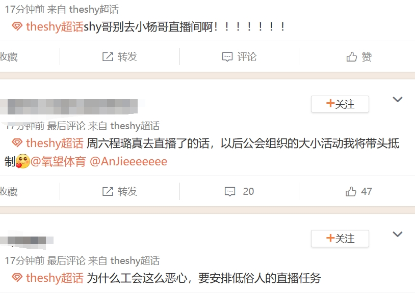 但因小杨哥此前表示Theshy为前职业选手,并且粉丝担心即将备战S赛的Theshy状态会受到影响,以及Theshy中文水平不见得合适直播等问题,怒冲Theshy经济公司的负责人安杰,扒出安杰此前放话可以影响Theshy退役的截图,纷纷表示对这个跨界联动不满!