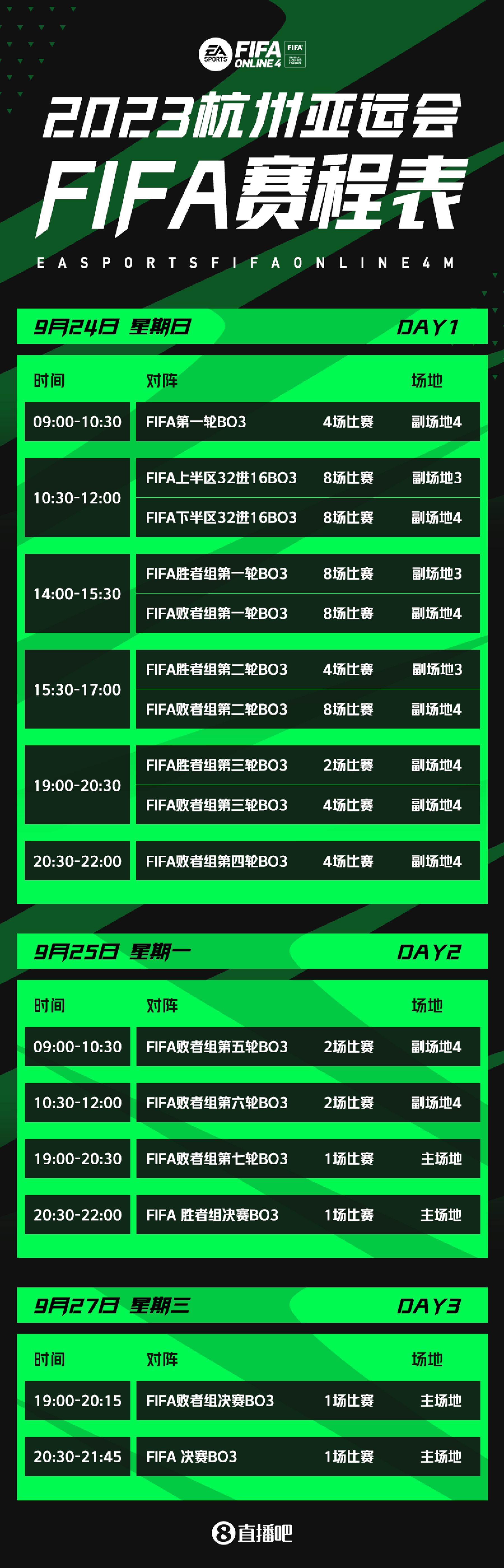 亚运FIFAOL4赛程表:24日首日全副舞台27日晚间决出金牌归属