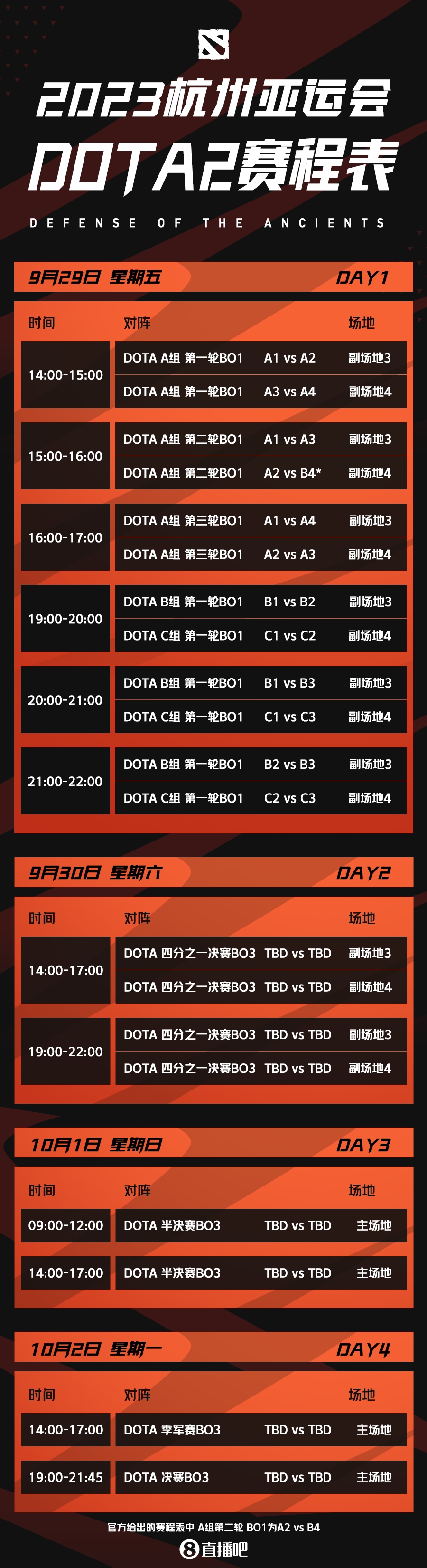 亚运DOTA2赛程表:最后开始29号小组赛十月二日决出冠军!