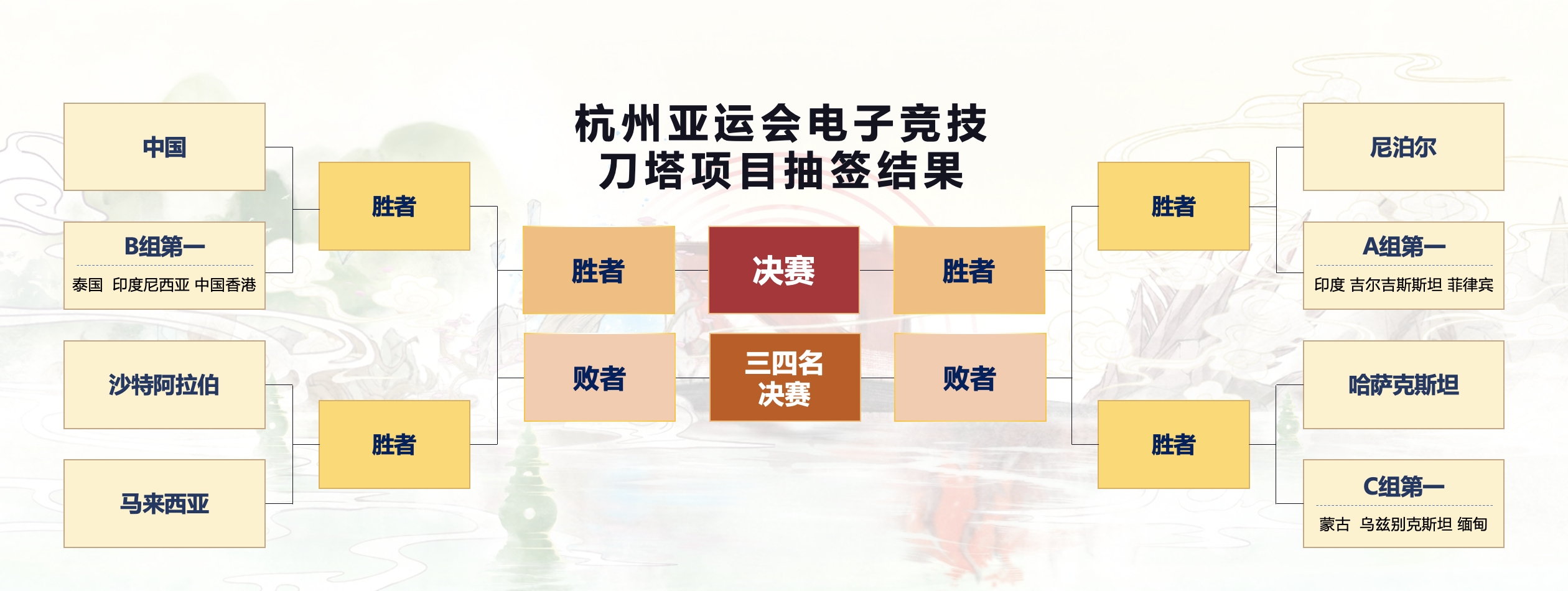 9月22日讯 今日,杭州亚运会电子竞技七个项目分组抽签,其中《DOTA 2》分组确定。此前中国队因为预选赛拿到东亚赛区第一,正赛直通八强,而马来西亚队如果击败沙特阿拉伯或将与中国