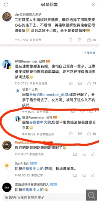 09月15日讯 近日有消息传出前LPL解说王记得将要回归,因此不少粉丝在记得评论区回复祝安好,也有人讨论到了记得此前与主持人骆歆的恋情相关,记得回复透露是骆歆主动要求分手。