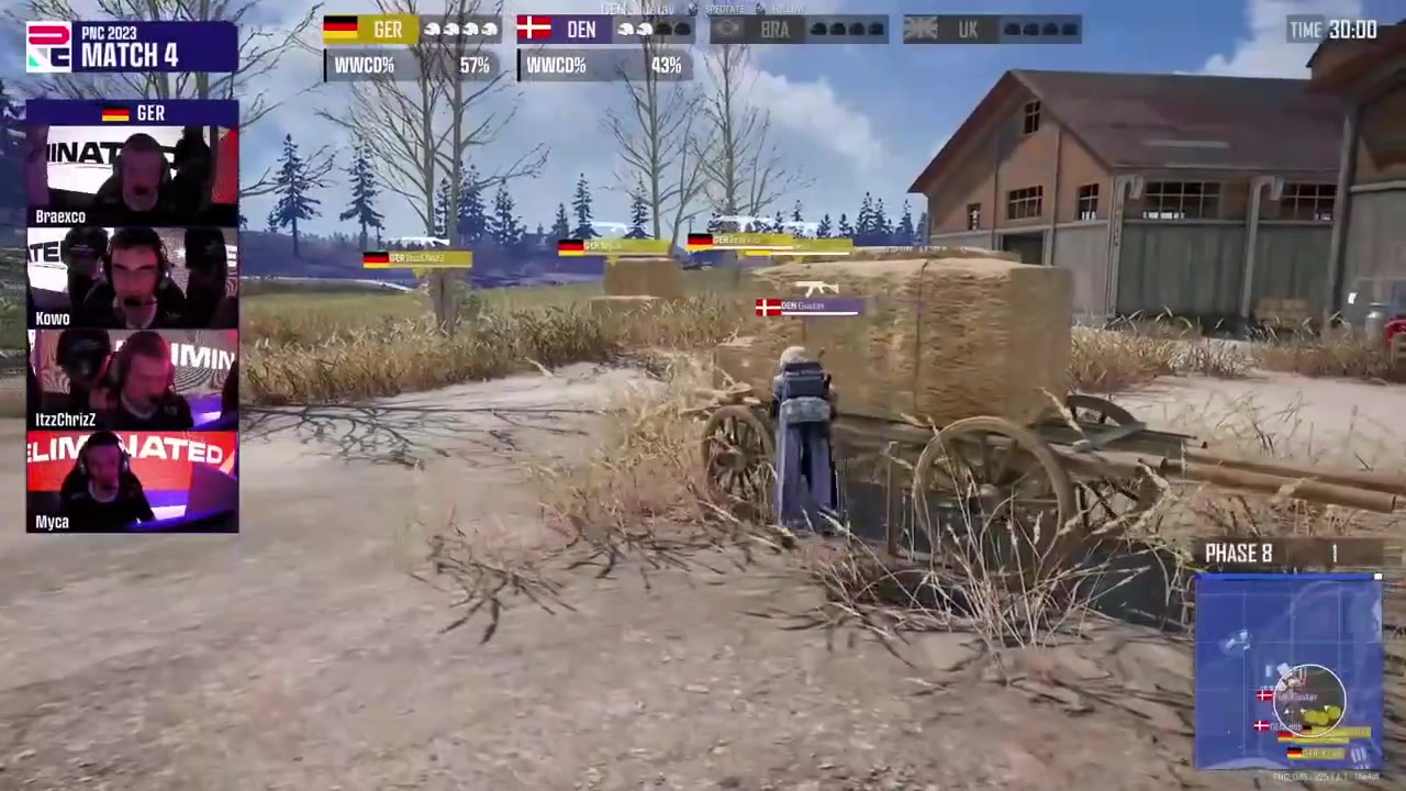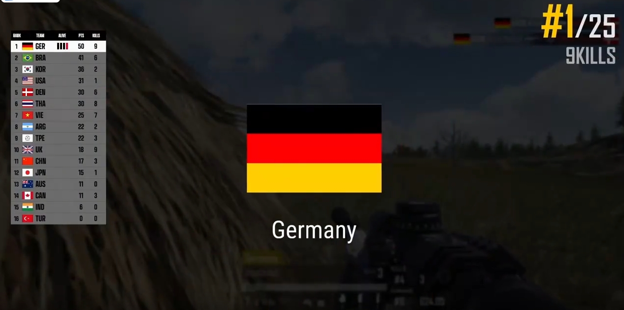 首场赛果决赛圈简报情况:本局维寒迪,八阶段UK淘汰BRA独狼后止步第三,决赛圈GER四人满编收掉DEN,成功吃鸡。