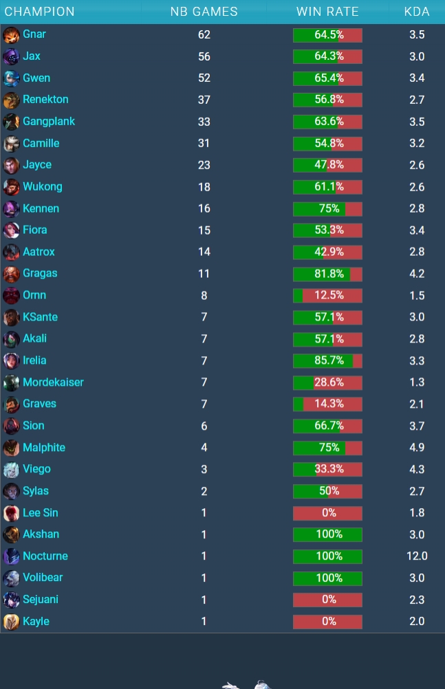 9月16日讯 杭州亚运会英雄联盟项目中国队上单位置将由陈泽彬(ID:Bin)出战,本篇来介绍这位选手的英雄池,具体如下:Bin职业生涯纳尔的使用次数最多,高达62场,其次是进攻属性拉满的贾克