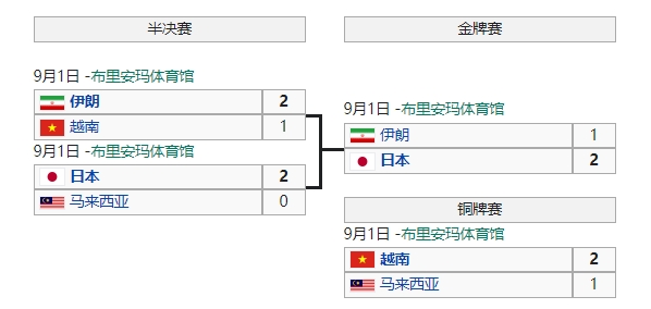 伊朗代表队以2-1击败了越南代表队晋级决赛,将与日本代表队争夺冠军