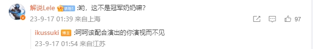 打野lele则评论道“哟,这不是冠军奶奶嘛?”