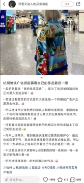 09月19日讯 此前引起热议的杭州地铁有关电竞的土潮广告正被拆除,制作这份广告的作者在小红书上发帖,解释自己制作如此风广告的原因。杭州地铁广告拆前再看自己的作品最后一眼-
