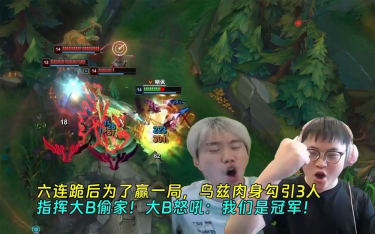 六连跪后为赢一局Uzi肉身勾引3人指挥大B偷家Doinb:我们是冠军