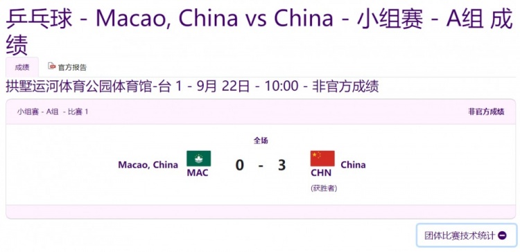 杭州亚运会国乒首秀中国女队30完胜中国澳门队迎开门红