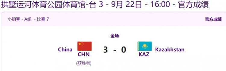 9月22日讯 杭州亚运会乒乓球女团小组赛,中国队3-0击败哈萨克斯坦队迎来两连胜。首场比赛中,孙颖莎3-0战胜萨维诺兹-米尔卡迪罗娃,三局比分分别是:11-2、11-5、11-0。第二场比赛,