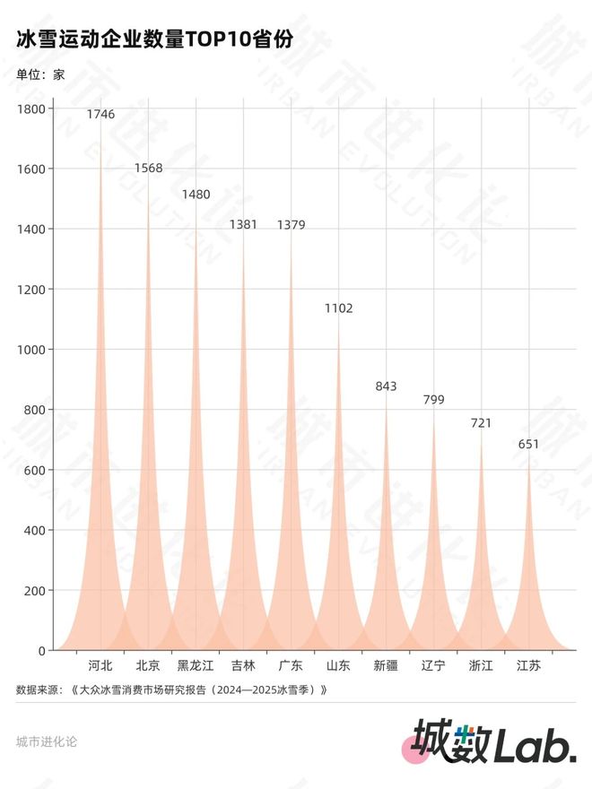 不过,在滑雪场馆数量、冰雪运动相关企业规模等方面,黑龙江与“全国第一”尚有差距。根据上述报告对各省份滑雪场馆数量的统计,河北以84个位列全国第一,黑龙江(73个)与辽宁并列第二,新疆(72个)以微弱差距紧随其后;同期,黑龙江冰雪运动产业相关企业数量共1480家,分别比前两位的河北和北京少266家、88家,排名从上个冰雪季全国第二降至全国第三。