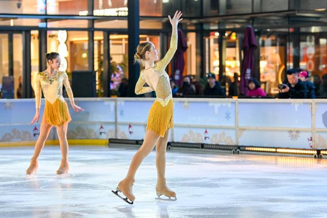 上海陆家嘴中心L+Mall下沉广场变身冰雪舞台,来自欧美及中国的顶级冰舞艺术家,联袂花样滑冰世界奥运选手、冠军名将陆续登场,冰刃划出的光影在透明冰面上交错闪动,脚边跃起的冰屑与舞者擦身而过的风声交织在一起,营造出极具沉浸感的观演氛围。整场冰舞表演让广场化为一个具备真实质感的“沉浸式冬季剧场”,也让这座城市广场成为浦东今冬最引人注目的风景之一。