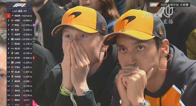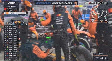 第43圈,皮亚斯特里先行进站!仅耗时1.8秒的他,出站后排在了维斯塔潘身后16秒左右的距离!而比赛还剩下14圈!
