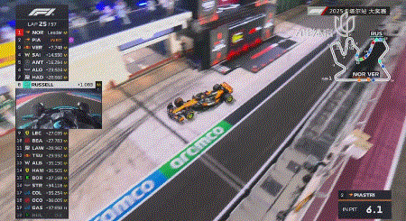 随后官方给出数据统计,如果比赛以这样的排位结束,那么皮亚斯特里将追近10个积分,维斯塔潘也将追回3分,三人将带着22分的积分差距进入阿布扎比大奖赛。