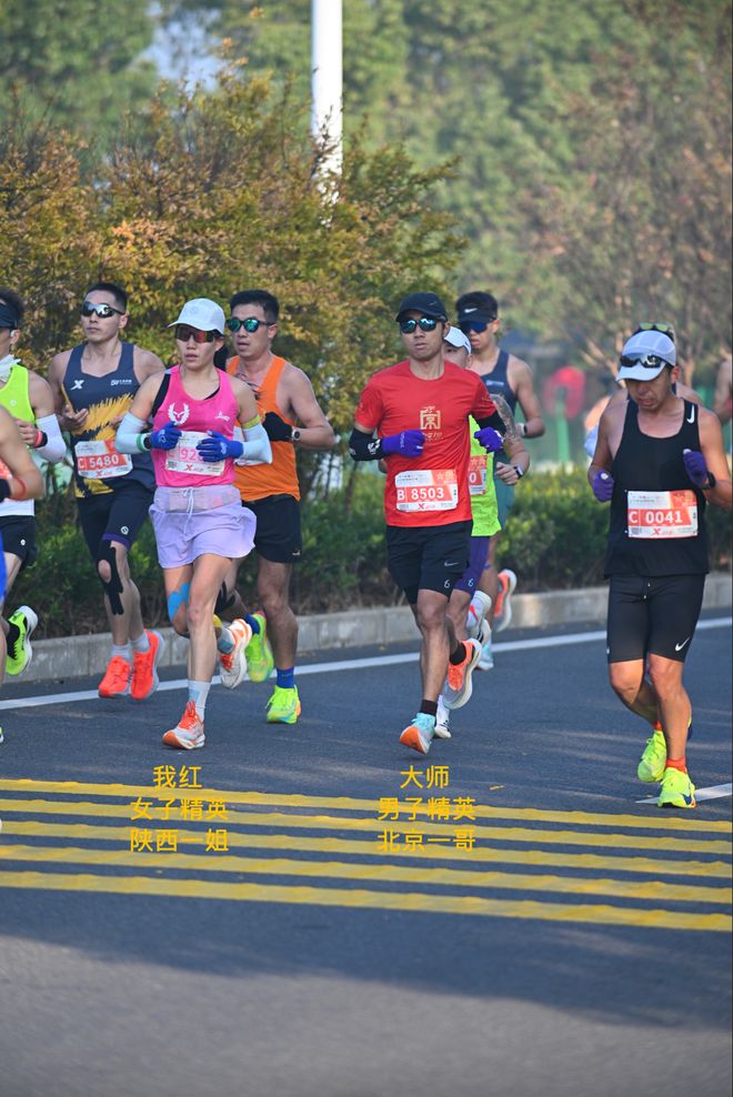 在到第二个折返处之前很远,我的头就一直冲向右,一直盯着,生怕错过了一哥和一姐。当碰到大师和一姐变红的那一刻,我掐指一算,他俩这次的破3应该有了!瞬间的狂喜涌上心头,也真的为他们的拼搏而感到开心,在这之后我便跑得更放松了。