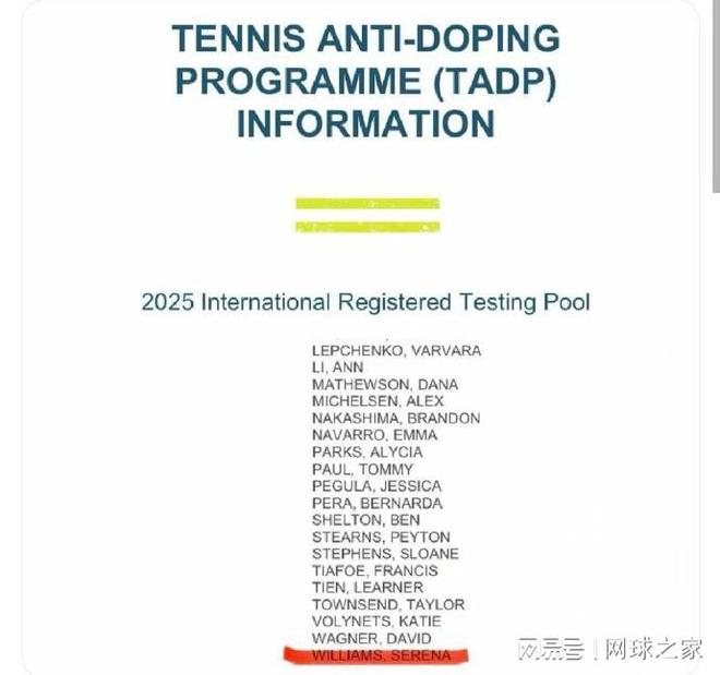 近日,外媒发现美国前网球职业选手塞蕾娜·威廉姆斯的名字突然出现在了ITIA公布的网球反兴奋剂检测名单之中,要知道这是参加正式比赛的必要条件。一时间,关于小威要在2026赛季重