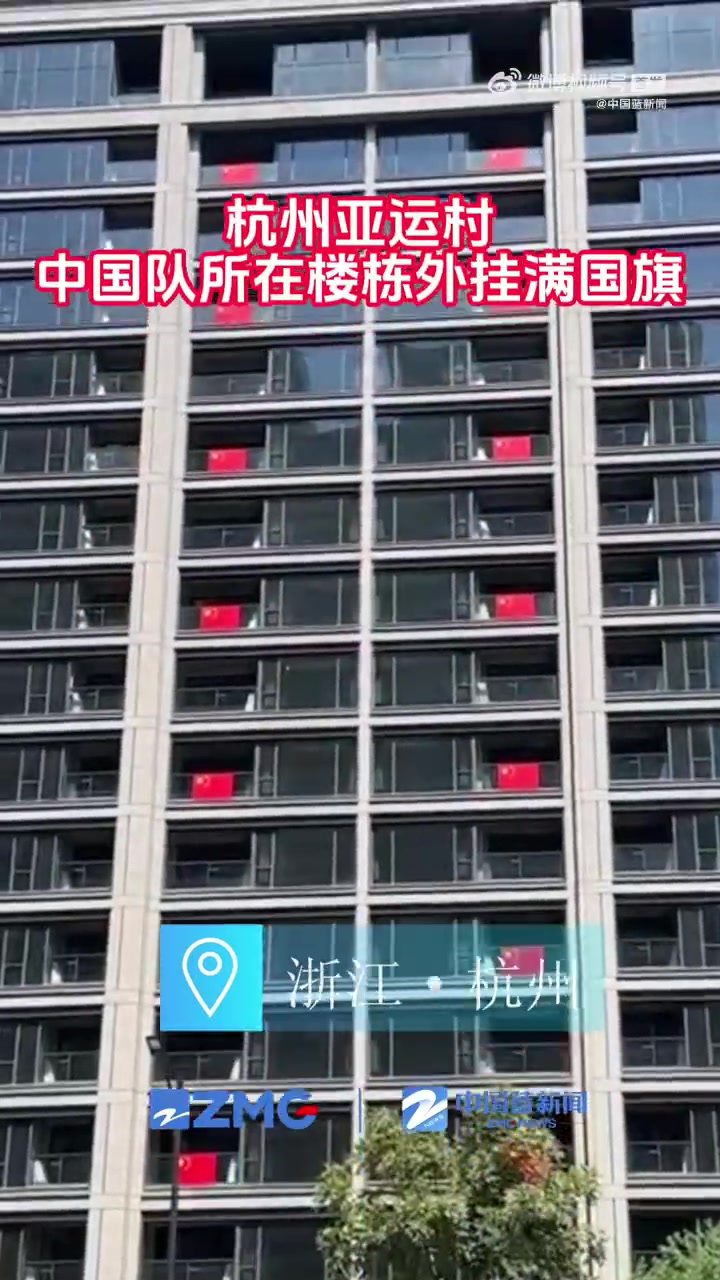 氛围感已经有了!杭州亚运村中国队所在楼层挂满国旗
