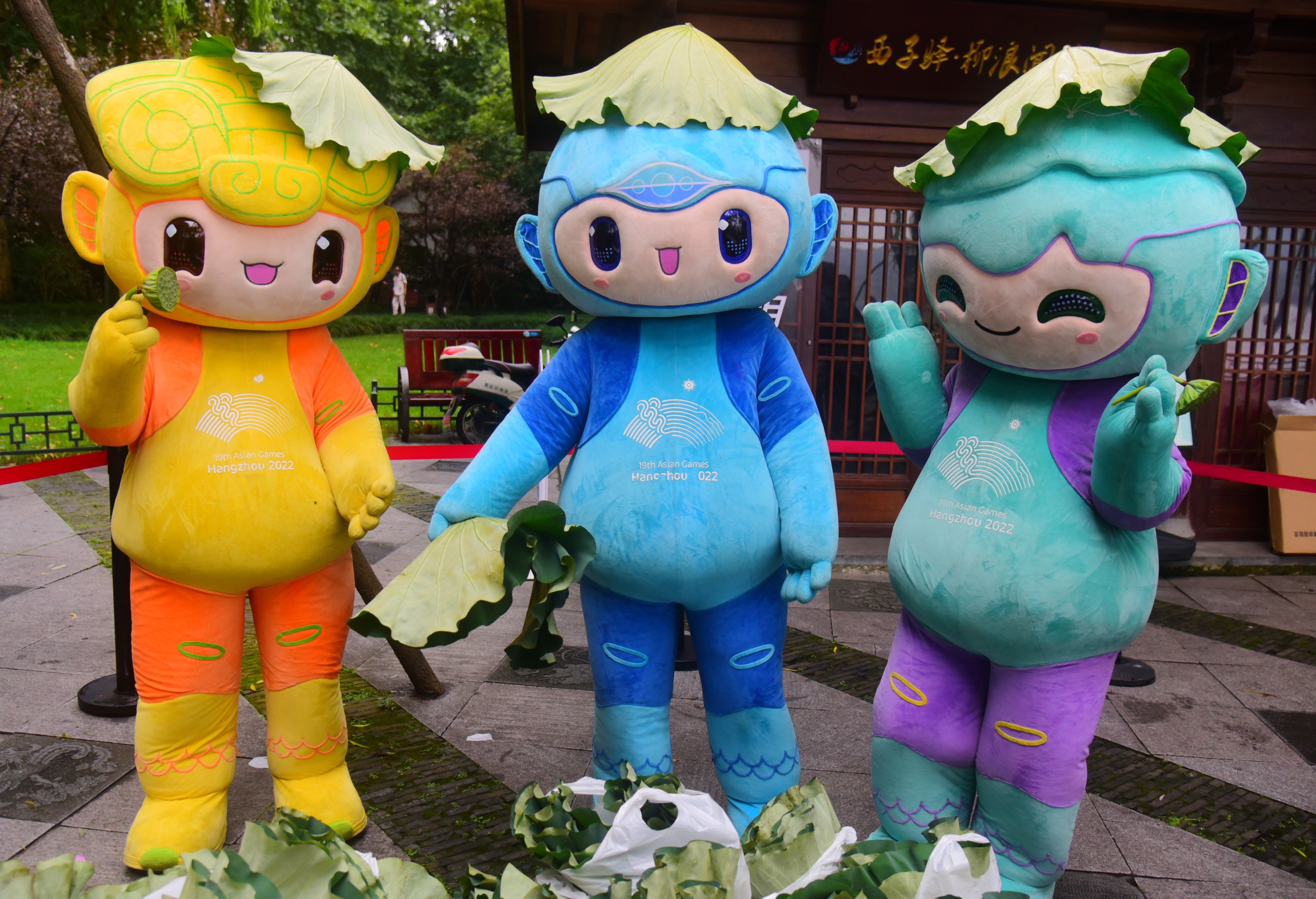 杭州亚运会吉祥物组合名为“江南忆”,出自唐朝诗人白居易的名句“江南忆,最忆是杭州”,它融合了杭州的历史人文、自然生态和创新基因。三个吉祥物分别取名“琮琮”“宸宸”“莲莲”。