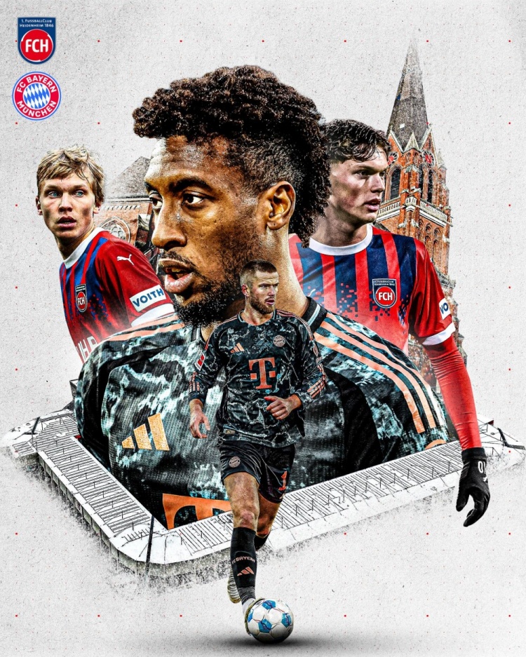 拜仁发布客战海登海姆海报:科曼、戴尔、万纳尔、克雷茨格出镜